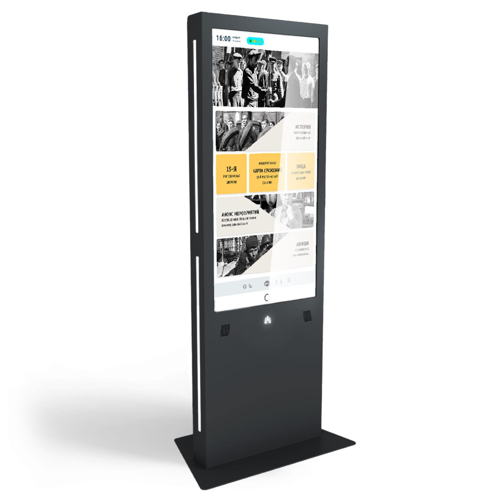 Интерактивная сенсорная мультимедийная стойка БЕЙСИК 55 выполнена в антивандальном стальном корпусе, оборудована ярким сенсорным 4K экраном и встроенные стереодинамики, что позволяет транслировать не только информационный контент, но и рекламный. ИК-сенсор до 20 одновременных касаний позволяет быстро и четко управлять видео и медиафайлами. Для расширения функционала в БЕЙСИК можно установить терминал оплаты, считыватель магнитных карт, термопринтер и сканер штрих и QR-кодов.