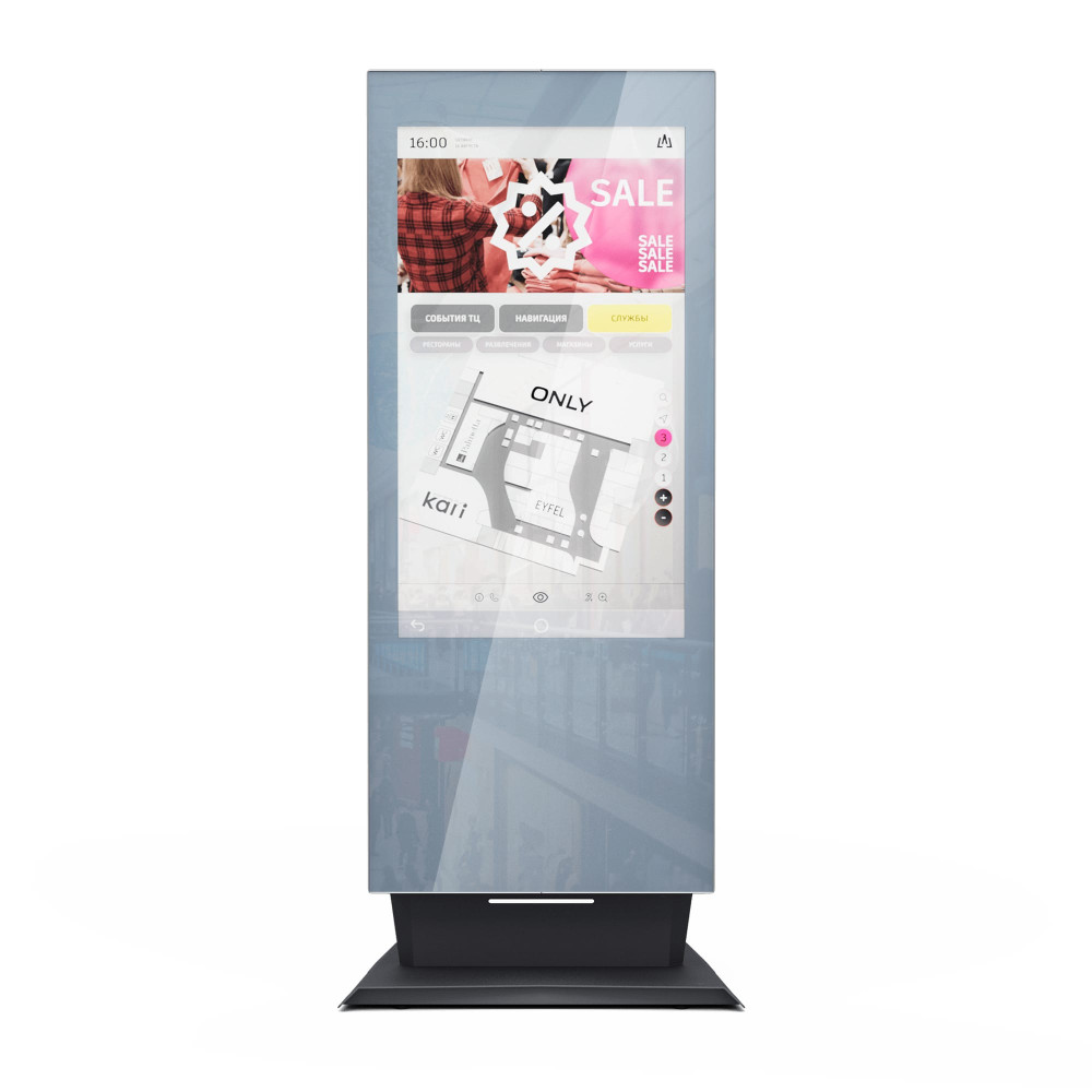 Стойка с сенсорным экраном может быть дополнена красивым программным обеспечением под вашу сферу деятельности в цветах бренда. УЛЬТРА в местах большого скопления людей станет местом притяжения для посетителей, покупателей, и даже самих сотрудников.