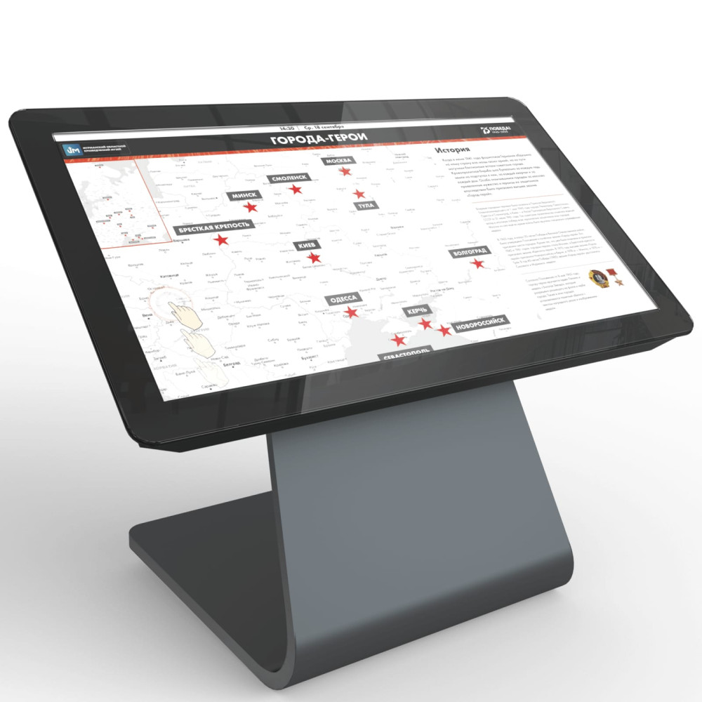 Широкоугольный экран диаметром 65 дюймов с разрешением 4K, закаленное антивандальное стекло, тонкая изящная опора — это все про сенсорный стол УЛЬТРА 65. Практичный дизайн, универсальное оформление и возможность брендирования придают такому оборудованию неповторимый вид, который привлекает внимание. Входит в премиальную линейку сенсорных столов.