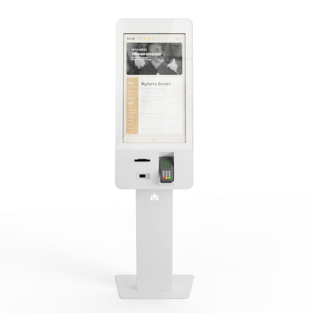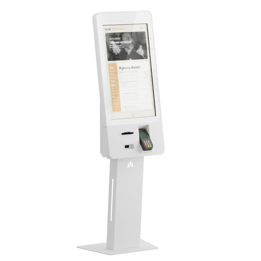 Позволяет быстро и наглядно предоставить товар или услугу, а также сократить расходы на персонал. Обеспечивает удобную оплату (контактный и бесконтактный способ оплаты) и выдачу чека. Оснащен ярким сенсорным экраном 32”, картоприемником, сканером штрих-кодов и термопринтером. Стильный и утонченный дизайн, который отлично впишется в интерьер, наличие атмосферной подсветки и светового логотипа.