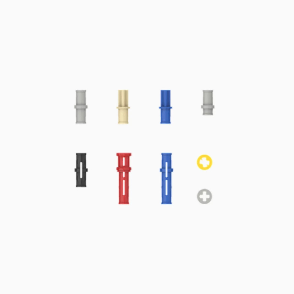 В комплект входят 108 деталей, среди которых штифты и втулки.