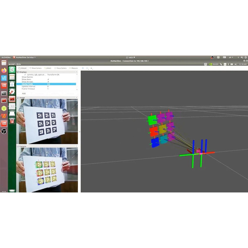 - Камера глубины поддерживает 3D-картографирование двумя способами: чистое RTAB-видение и объединение видения, а также лидар, который позволяет автономному мобильному роботу перемещаться и избегать препятствий, как на 3D-карте, так и в реальных условиях.