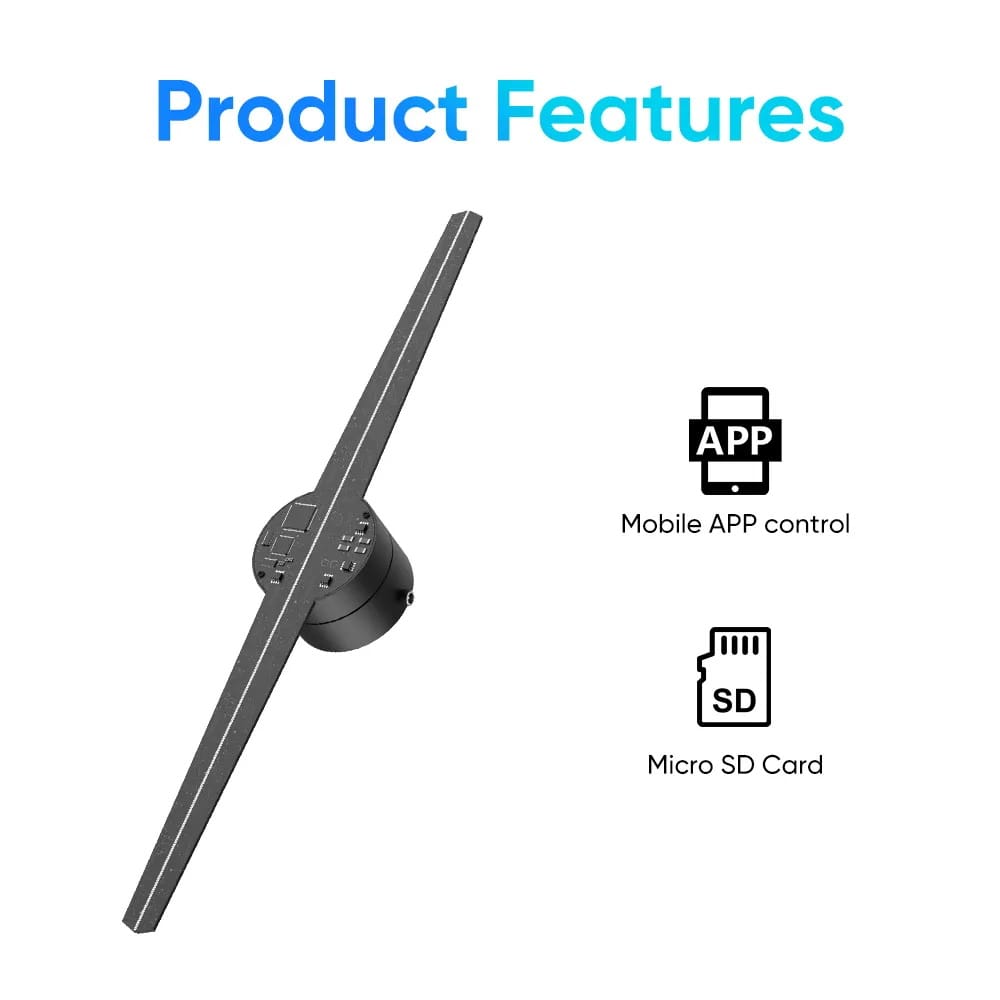 Светодиодный 3D голографический вентилятор Z2 (42см) - устройство представляет собой пропеллер со светодиодами, которые включаясь в определенное время при вращении создают парящее в воздухе яркое трехмерное изображение с эффектом голограммы.