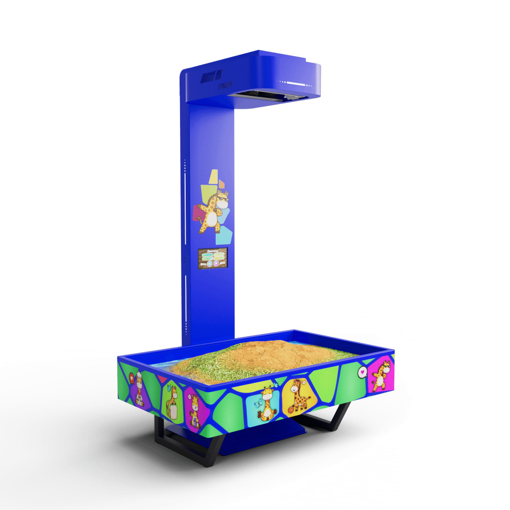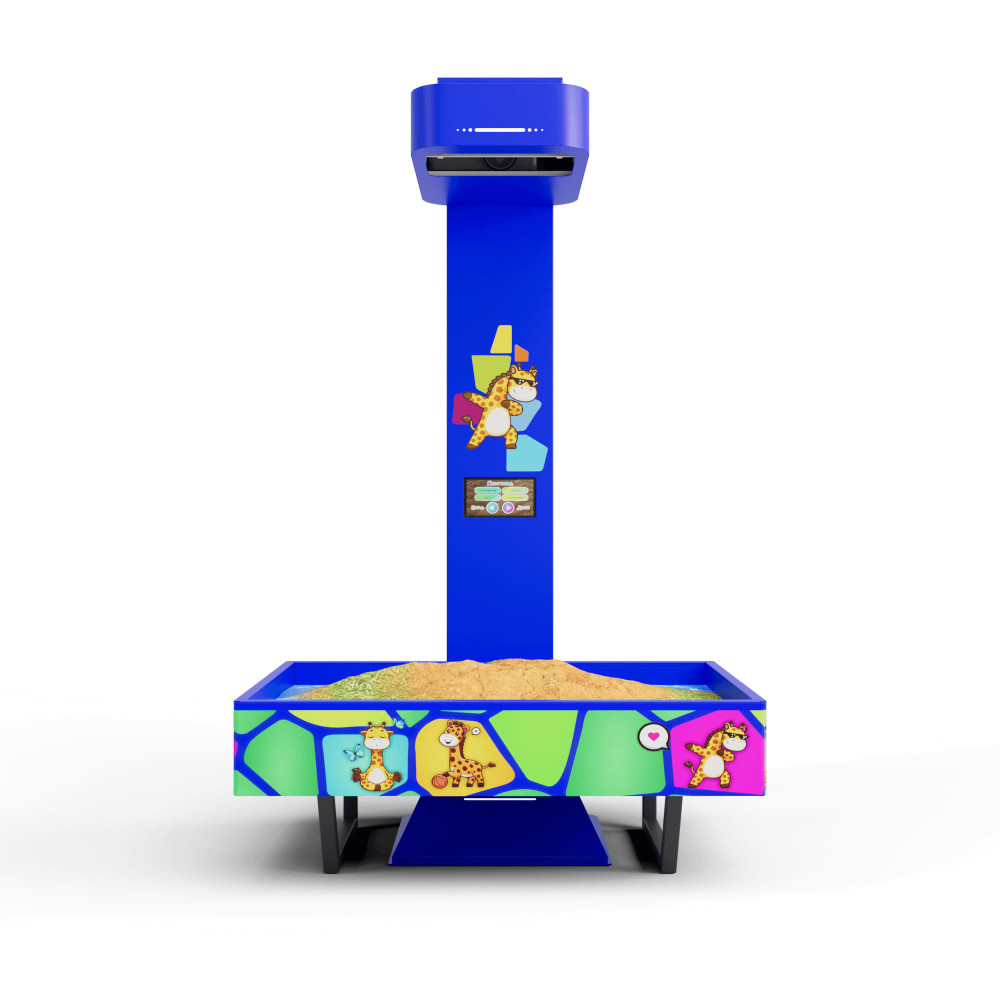Активно используется педагогами и психологами для работы с детьми в детских садах, ДОУ, коррекционных классах и развивающих центрах. Занятия с интерактивной песочницей могут быть как индивидуальными, так и групповыми — одновременно взаимодействовать с песком могут до 6 детей. Благодаря специальной панели, проводить занятия с детьми можно не только с песком! Интерактивная песочница превращается в интерактивный стол при помощи панели, которая закрывает резервуар с песком. На поверхность панели транслируется программное обеспечение — развивающие игры для детей. Также в комплекте идет клавиатура и мышь для управления играми. Проектор, расположенный над резервуаром с песком, с помощью датчика глубины и специального программного обеспечения оживляет песочные фигуры, раскрашивает рельефы, горы, насыпи. Визуализирует вулканы, реки, леса, геометрические фигуры, животных и многое другое.
